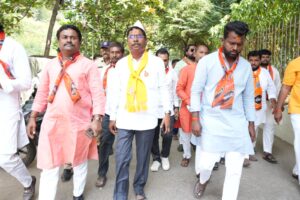 अर्ज भरण्यासाठी भव्य अशा रॅलीचे आयोजन करण्यात आले होते. यामुळे वातावरण जल्लोषपूर्ण झाल्याचं पाहायला मिळाले. उघड्या गाडीवर उभे राहून मतदारांना अभिवादन करत महादेव कोगनुरे यांनी उमेदवारी अर्ज भरण्यासाठी कूच केली. सोलापूर येथे उमेदवारी अर्ज भरताना महादेव कोगनुरे यांच्यासह पक्षाचे सर्व पदाधिकारी व कार्यकर्ते मोठ्या संख्येने उपस्थित होते. निवडणूक निर्णय अधिकारी यांच्याकडे उमेदवारी अर्ज सुपूर्द केला….