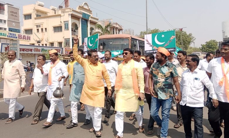 यावेळी शिवसेनेतर्फे धर्मवीर छत्रपती श्री संभाजी महाराज चौक ते छत्रपती श्री शिवाजी महाराज चौकापर्यंत पाकिस्तानचा झेंडा गुंडाळलेली तिरडी घेऊन अंतयात्रा काढण्यात आली. तसेच या तिरडीचे दहन छत्रपती श्री शिवाजी महाराज चौकात करण्यात आले.