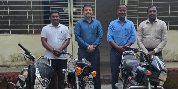 तसेच ” एक संशयित इसम महालक्ष्मी मंदीर ते मार्केट यार्डकडे जाणाऱ्या रोडवर, सोलापूर येथे चोरीची मोटार सायकल विक्रीकरिता घेवुन थांबला आहे.” अशी गोपनिय माहिती प्राप्त झाली. प्राप्त बातमीचा आशय वरिष्ठांना कळवुन, त्यांचे मार्गदर्शनाप्रमाणे बातमीचे ठिकाणी जावुन, इसम नामे शेखर संभाजी जाधव, वय २५ वर्षे, सध्या रा. मु.पो. मोघा, ता.उदगिर, जि. लातुर, कायम रा. गवळी चाळ, चक्रपाणी वसाहत रोड, भोसरी, पुणे – ४११०३९ यास ताब्यात घेतले. त्याच्या ताब्यातुन विना नंबरप्लेटची एक हिरो कंपनीची स्पलेंडर मोटार सायकल मिळुन आली. त्याबाबत नमूद इसमाकडे विचारपूस केली असता, सदरची मोटार सायकल ही, दि.२६/०८/२०२५ रोजी, साखर पेठ, सोलापूर येथून चोरी केली असल्याचे सांगितले. त्यावरुन मोटार सायकल चोरीचा अभिलेख पडताळला असता हिरो
