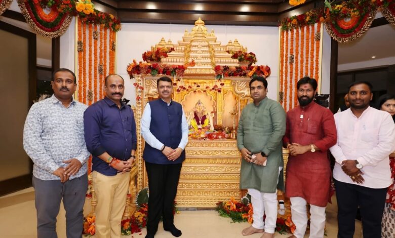 आमदार देवेंद्र कोठे आणि आमदार सचिन कल्याणशेट्टी यांनी घेतले मुख्यमंत्री देवेंद्र फडणवीस यांच्या घरातील बाप्पांचे दर्शन
