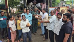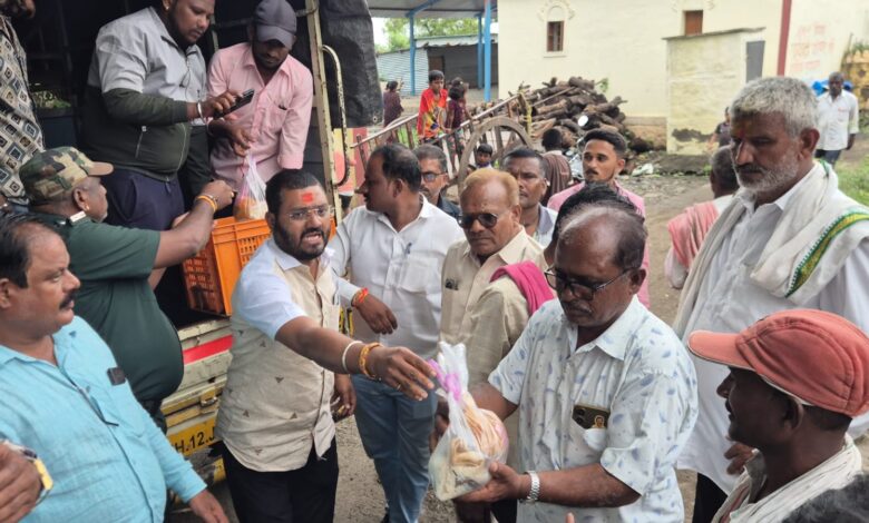 गुरुवारी रात्री झालेल्या ढगफुटी नंतर सांगवी {खुर्द},सांगवी {बुद्रुक}, व शिरसी येथील बाधित कुटुंब ,महसूल प्रशासनाचे अधिकारी – कर्मचारी, पोलिस यांच्यासह वाहन चालकांना श्री स्वामी समर्थ अन्नछत्र मंडळाच्या वतीने फूडचे पाकीट वाटप…