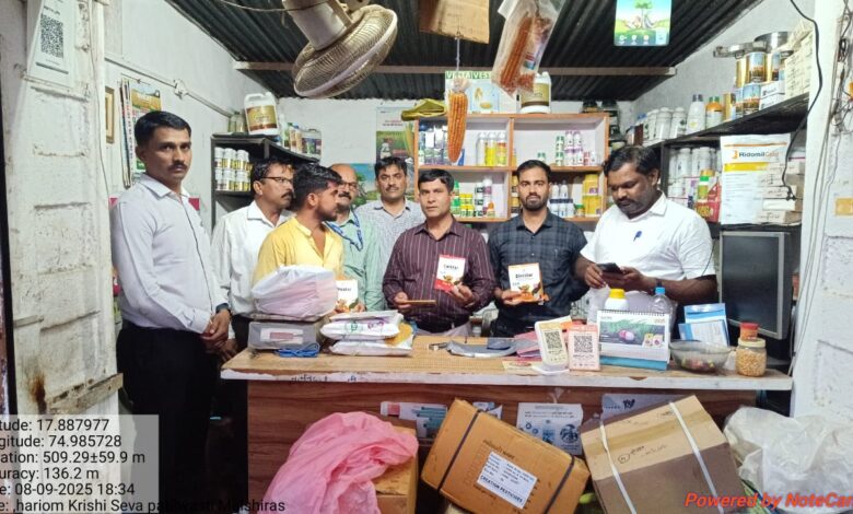 दि. ११ (जिमाका) – कृषी विभागाच्या जिल्हास्तरीय भरारी पथकास मिळालेल्या गोपनीय माहितीच्या आधारे दिनांक ८ सप्टेंबर २०२५ रोजी तालुका माळशिरस येथील मे. हरी ओम कृषी सेवा केंद्र, पाटील वस्ती, बागेचीवाडी (माळशिरस-अकलूज रोड) येथे विनापरवाना खत उत्पादन व विक्री प्रकरणी महत्त्वपूर्ण कारवाई करण्यात आली. ही कारवाई जिल्हा अधिक्षक कृषि अधिकारी शुक्राचार्य भोसले यांच्या मार्गदर्शनाखाली करण्यात आली.
