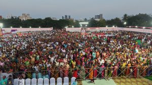 गोरज मुहूर्तावरची लगबग….मंगलवाद्यांचे सूर…आणि अनुपम्य असा सोहळा ‘याची देही याची डोळा’ पाहण्यासाठी जमलेले हजारो वऱ्हाडी अशा वातावरणात बुधवारी स्व. विष्णूपंत कोठे प्रतिष्ठानतर्फे २६ जोडप्यांचा मोफत सर्वधर्मीय सामुदायिक विवाह सोहळा अत्यंत आनंदी वातावरणात झाला. लिंगराज वल्याळ मैदानावर झालेल्या या सामुदायिक विवाह सोहळ्यास सोलापूर जिल्ह्याचे पालकमंत्री जयकुमार गोरे,संयोजक आमदार देवेंद्र कोठे, सोलापूर महानगरपालिकेचे आयुक्त डॉ. सचिन ओंबासे, पोलीस आयुक्त एम. राजकुमार, पोलिस उपायुक्त विजय कबाडे यांची प्रमुख उपस्थिती होती.