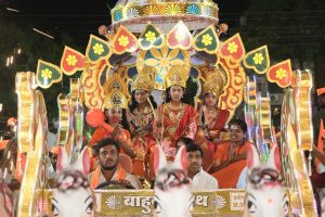 याप्रसंगी या कार्यक्रमात विशेष आकर्षण म्हणजे प्रभू श्रीराम सीतामाता लक्ष्मण व हनुमान जी यांच्या विषयातील बाल कलाकारांचे बगीतून आगमन होताच मान्यवरांच्या हस्ते प्रभू श्रीरामांचे व छत्रपती शिवाजी महाराजांना आरती करून कार्यक्रमाची सुरुवात करण्यात आली.
