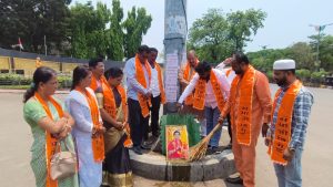 छत्रपती शिवाजी महाराज यांच्या बद्दल आक्षेपार्ह विधान करणाऱ्या बागेश्वर येथील धीरेंद्र शास्त्री याच्या प्रतिमेस चार हुतात्मा चौकात संभाजी ब्रिगेडच्या वतीने शेणाच्या अभिषेक घालून निषेध करण्यात आला.