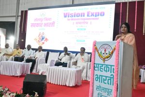 सहकार भारतीच्या वतीने आयोजित करण्यात आलेल्या व्हिजन एक्स्पोला सोलापूरकरांनी भरभरून प्रतिसाद दिल्याने पुढील वर्षी या प्रदर्शनाची व्याप्ती वाढवण्यात येणार असल्याचे स्वागताध्यक्ष सुधा अळ्ळीमोरे यांनी सांगितले. व्हिजन एक्स्पो फॉर वुमन एम्पॉवरमेंट या तीन दिवसीय सोलापूर जिल्हा सहकार भारतीकडून आयोजित प्रदर्शनाचा समारोप नॉर्थकोट मैदानावर रविवार दि. 26 एप्रिल रोजी सायंकाळी करण्यात आला त्यावेळी त्या बोलत होत्या. यावेळी सहकार भारतीचे महाराष्ट्र प्रदेश संपर्क प्रमुख संजय परमणे हे प्रमुख पाहुणे म्हणून उपस्थित होते.