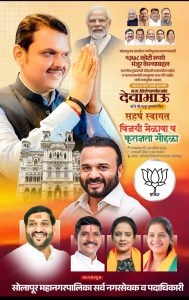राज्याचे लोकप्रिय मुख्यमंत्री देवेंद्रजी फडणवीस साहेब अर्थात आपल्या सर्वांचे लाडके. “देवाभाऊ” यांचे सोलापूरच्या पुण्यनगरीत सहर्ष स्वागत सहर्ष स्वागत